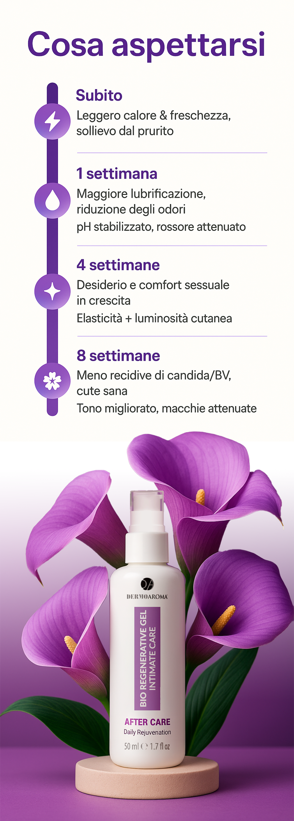 | pH & flora vaginale | Fluttuazioni, rischio di BV / candida | pH stabile, lattobacilli dominanti |